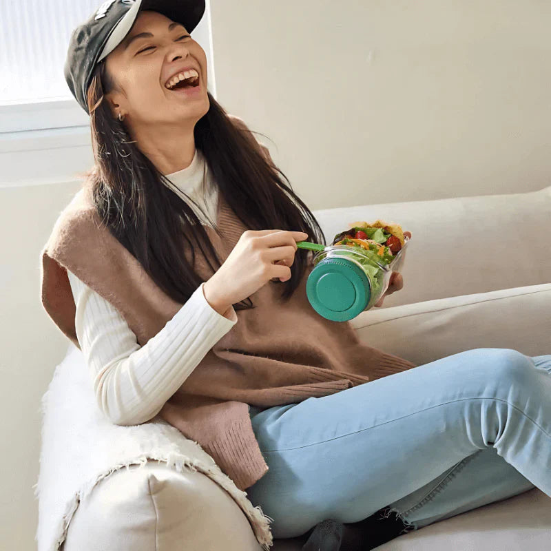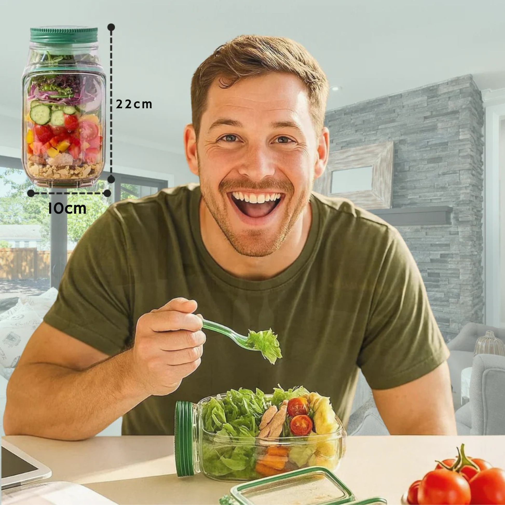 „Früher hatte ich immer triste, matschige Salate beim Mittagessen. Seit ich den Fresh Pott benutze, bleibt alles frisch und knackig. Besonders die getrennten Fächer sind genial, und ich spare Geld, weil ich weniger Essen wegwerfen muss."