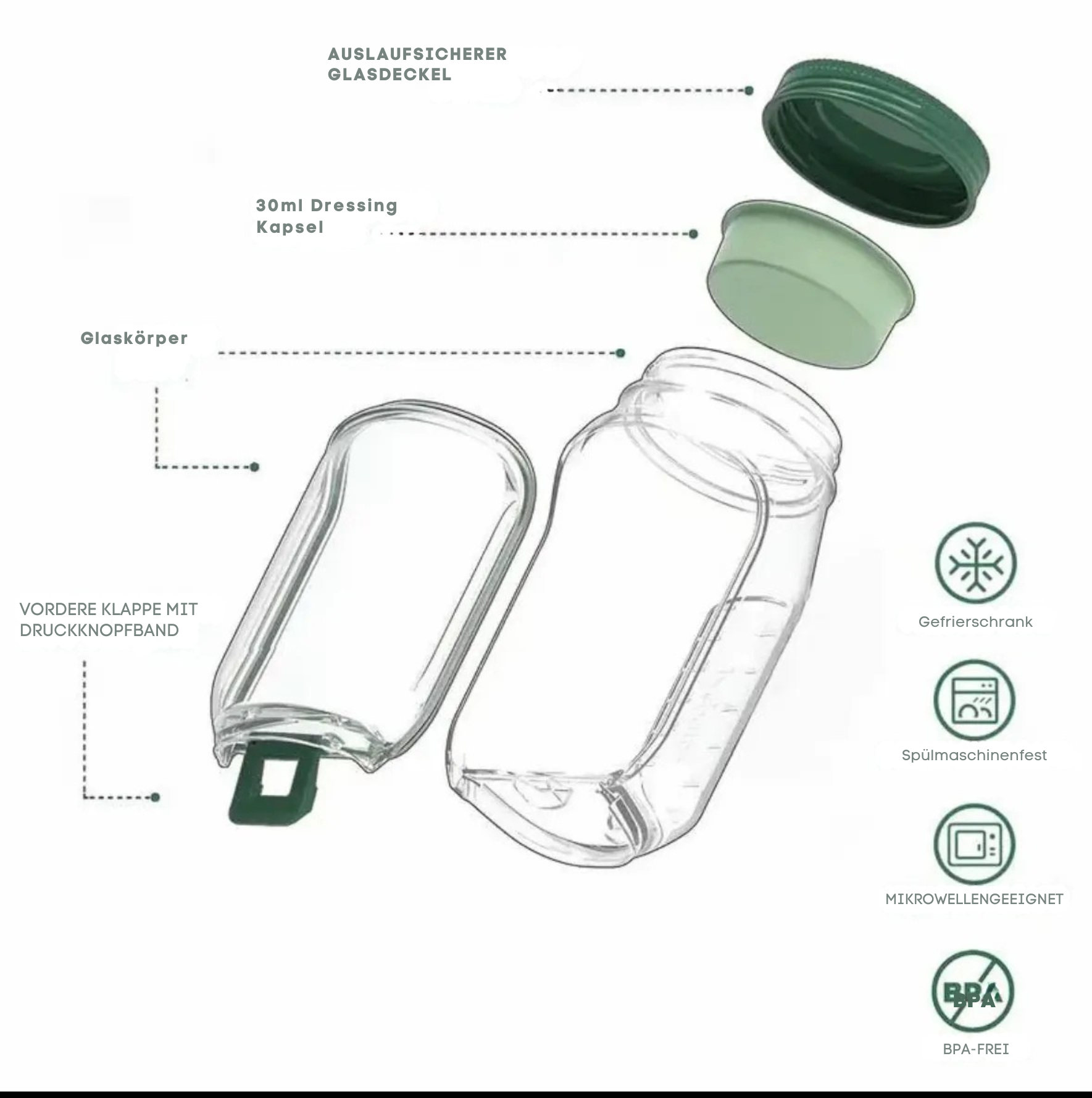 Mit Fresh Pott bleibt dein Salat bis zum Verzehr frisch und knackig. Das clevere Schichtsystem sorgt dafür, dass Dressing und Zutaten getrennt bleiben und nichts matschig wird. So kannst du deine Mahlzeit erst unmittelbar vor dem Essen zusammenmischen und den vollen Geschmack genießen.